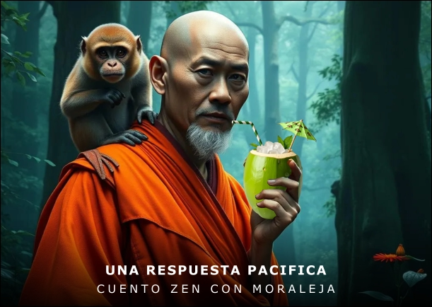 Desde lo alto de un cocotero, un mono arrojó un coco sobre la cabeza de un iluminado. El hombre lo recogió, bebió el dulce jugo, comió la pulpa y se hizo una escudilla con la cáscara.
